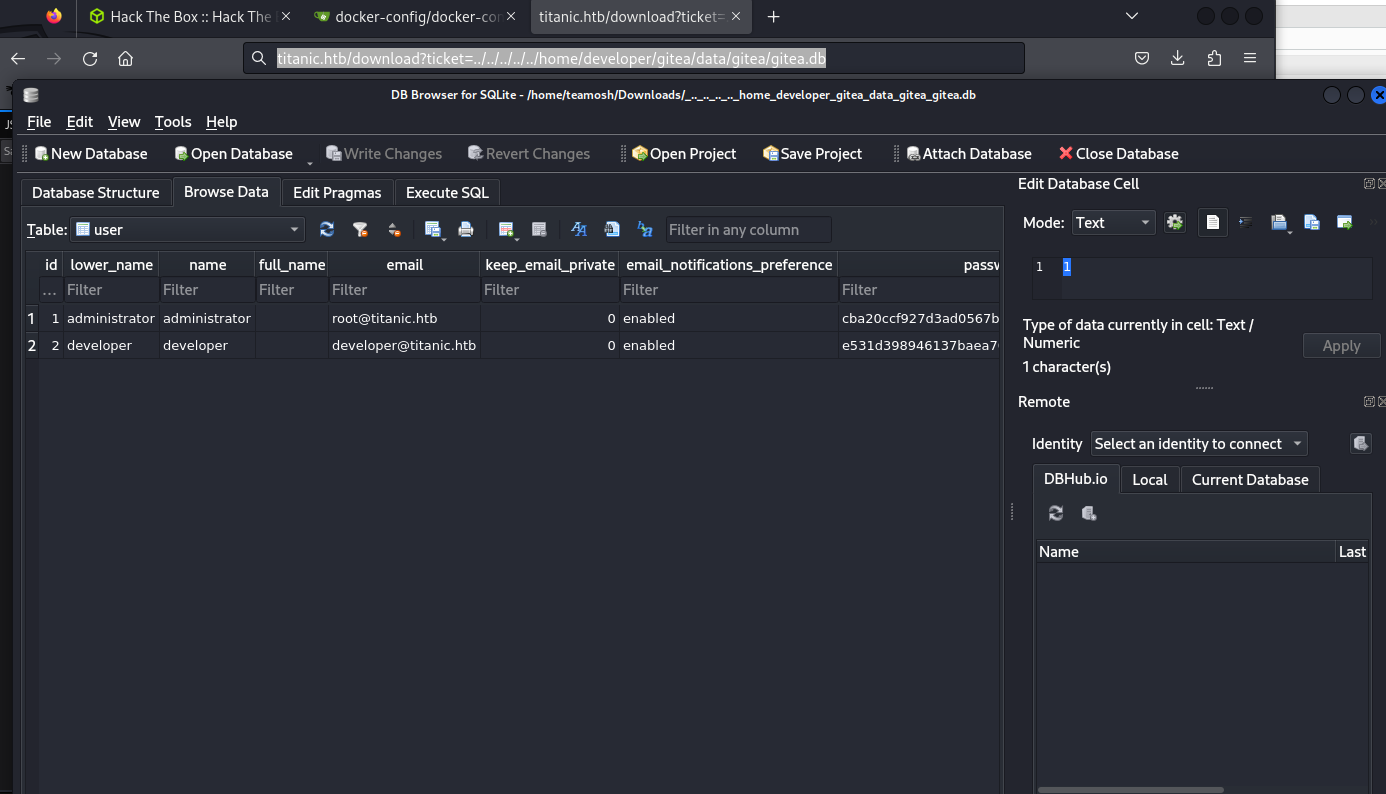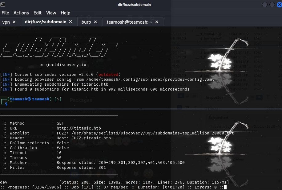 It immediately found dev subdomain, which contains gitea, which contains 1) docker-config and 2) flask app file